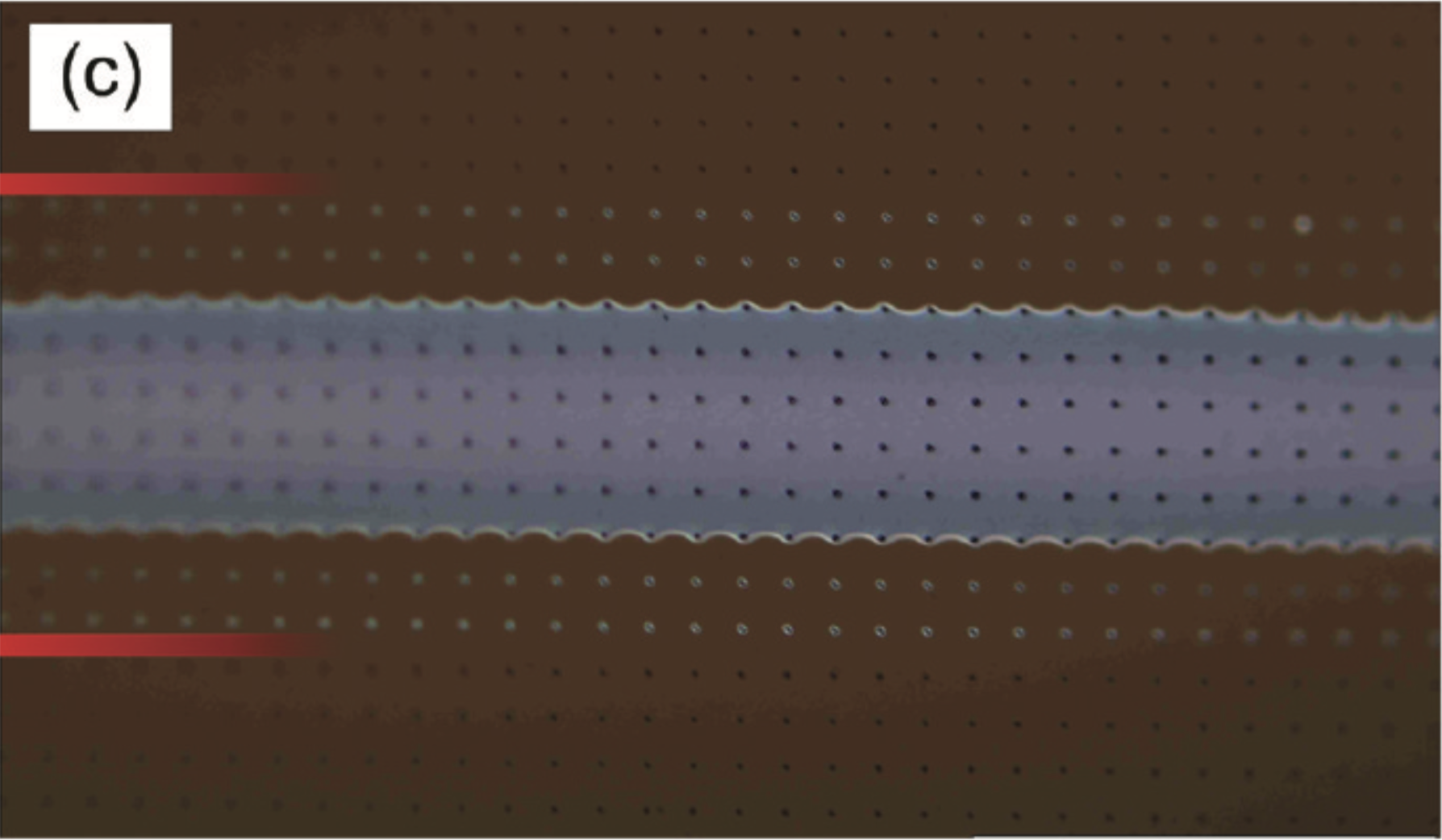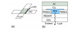 Polymer light emitting diodes and poly(di-n-octylfluorene) thin films as fabricated with a microfluidics applicator.