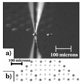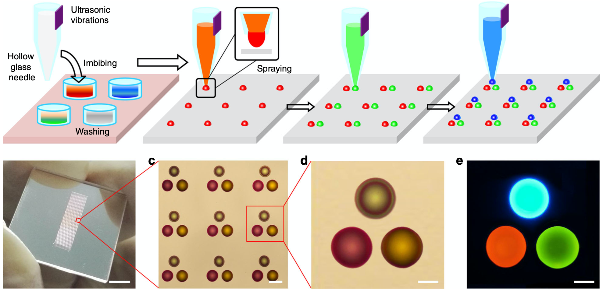 Controlled deposition of picoliter amounts of fluid using an ultrasonically driven micropipette.